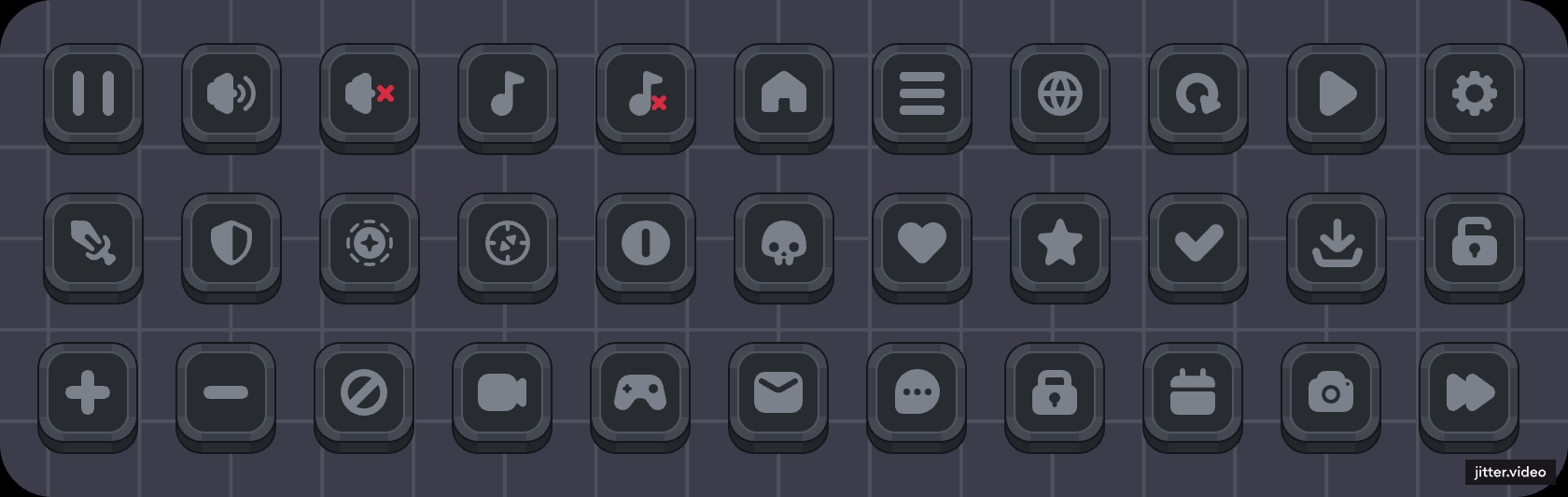 | Tags | 2D, Asset Pack, Buttons, Graphical User Interface (GUI), Icons, Vector |